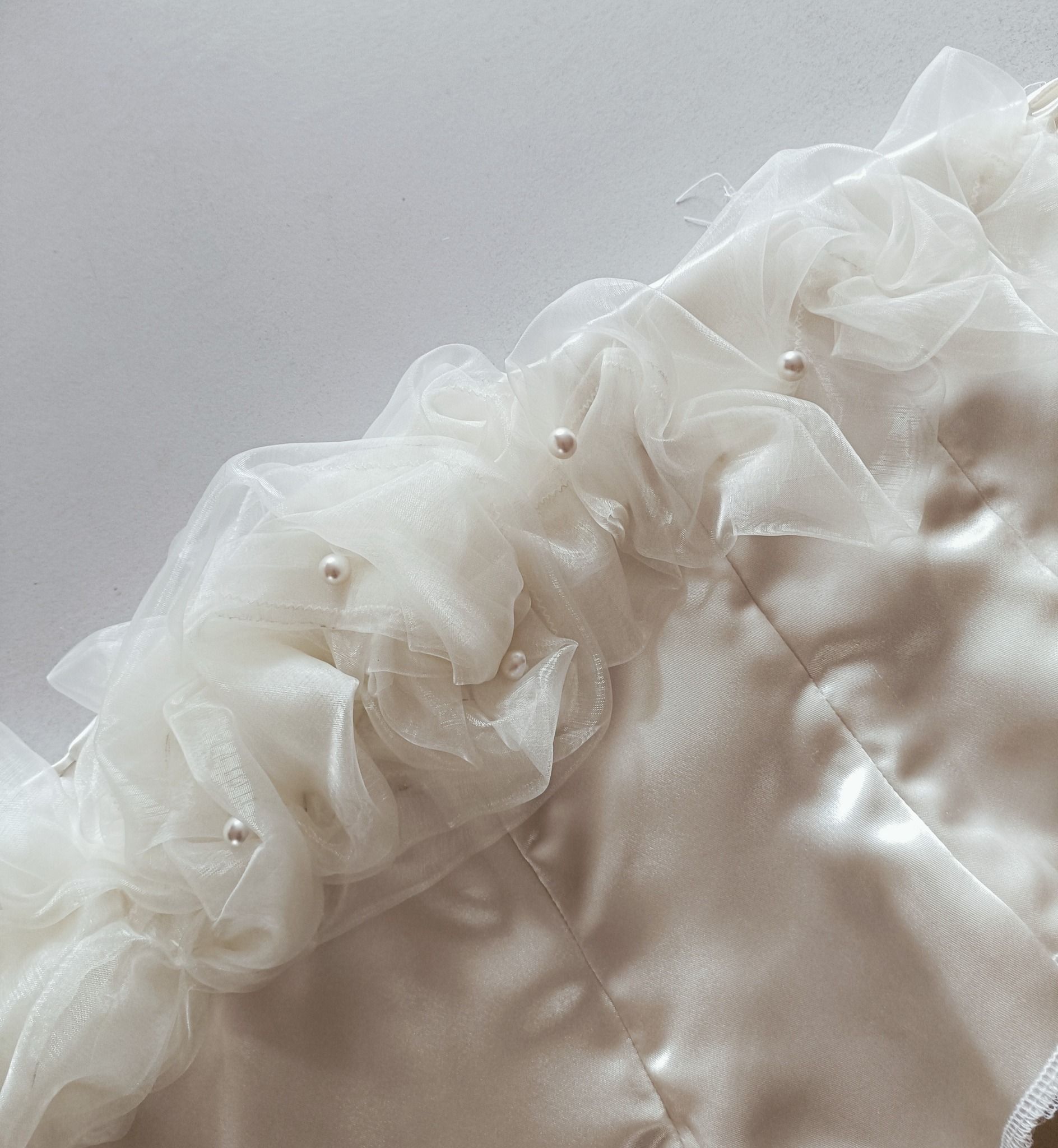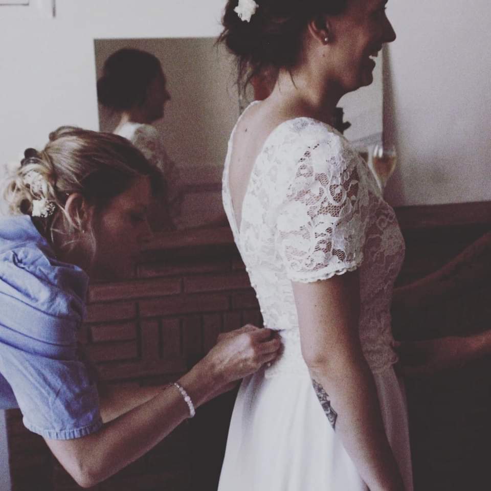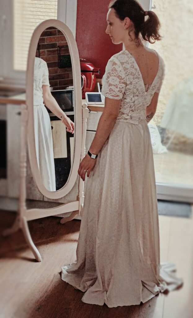 Ensemble de Mariée type « Champêtre ». Pour cette création, les deux défis principaux ont été :